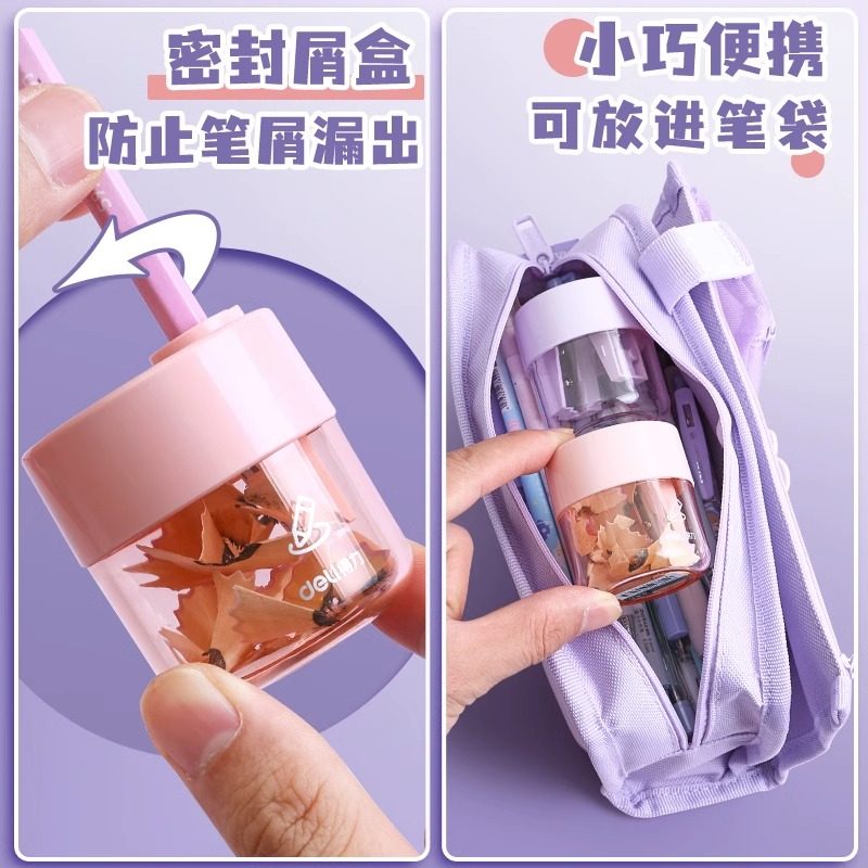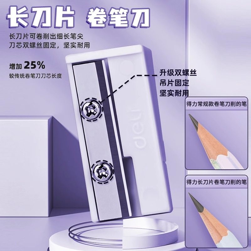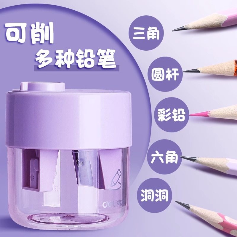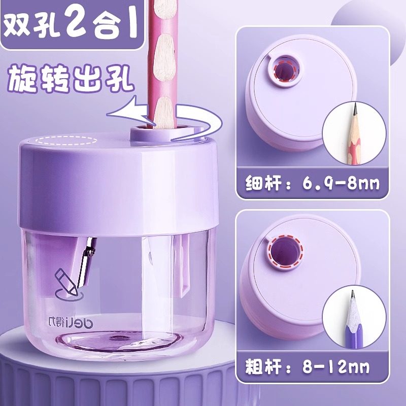 得力双孔儿童卷笔刀大孔径削笔器小学生幼儿园男孩迷你型多功能削笔刀大口径加粗铅笔刨笔刀女孩削笔机便携式