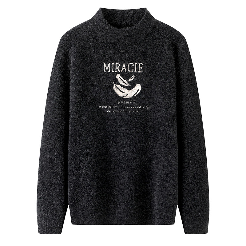 红蜻蜓男士加绒加厚圆领毛衣冬季新款针织提花爸爸冬装内搭打底衫