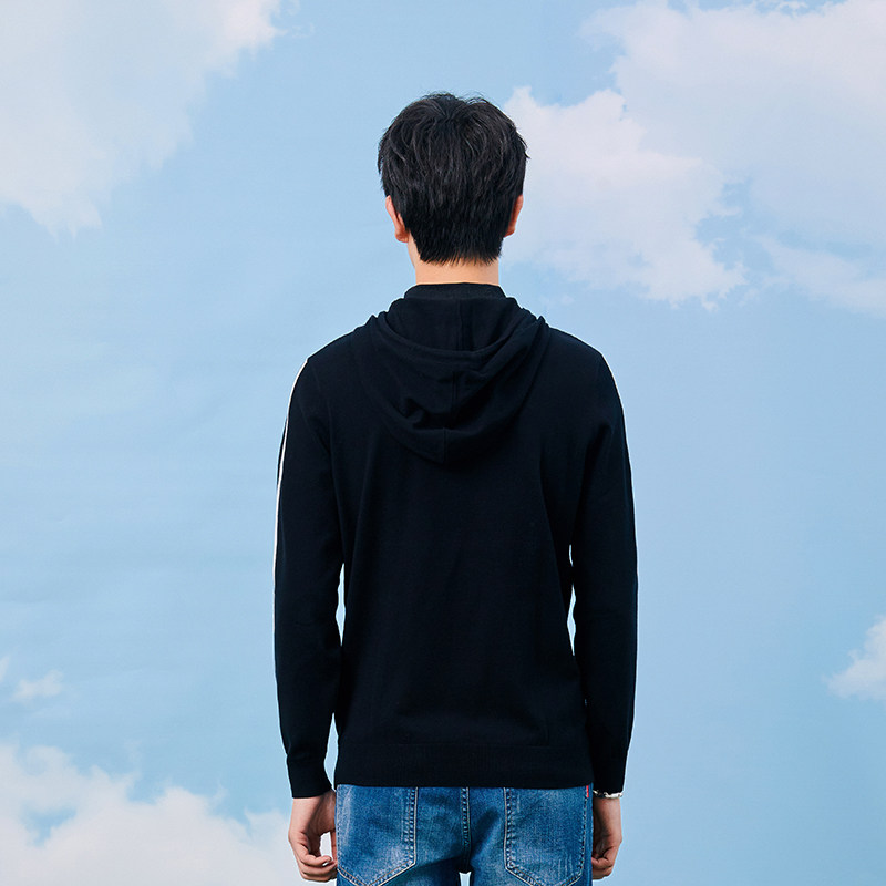 撤标外贸大牌正品尾货清仓男装冬抽绳连帽双领针织衫休闲长袖套头