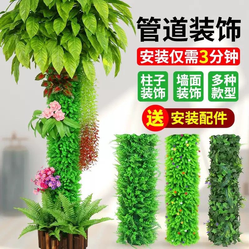 仿真竹节树皮绿植花藤条包下水管道装饰包空调暖气燃气管子遮挡