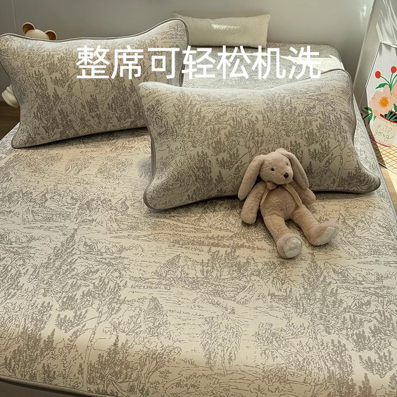 A类法式高端夏季冰丝凉席夏天2025新款可机洗床笠款三件套软席子