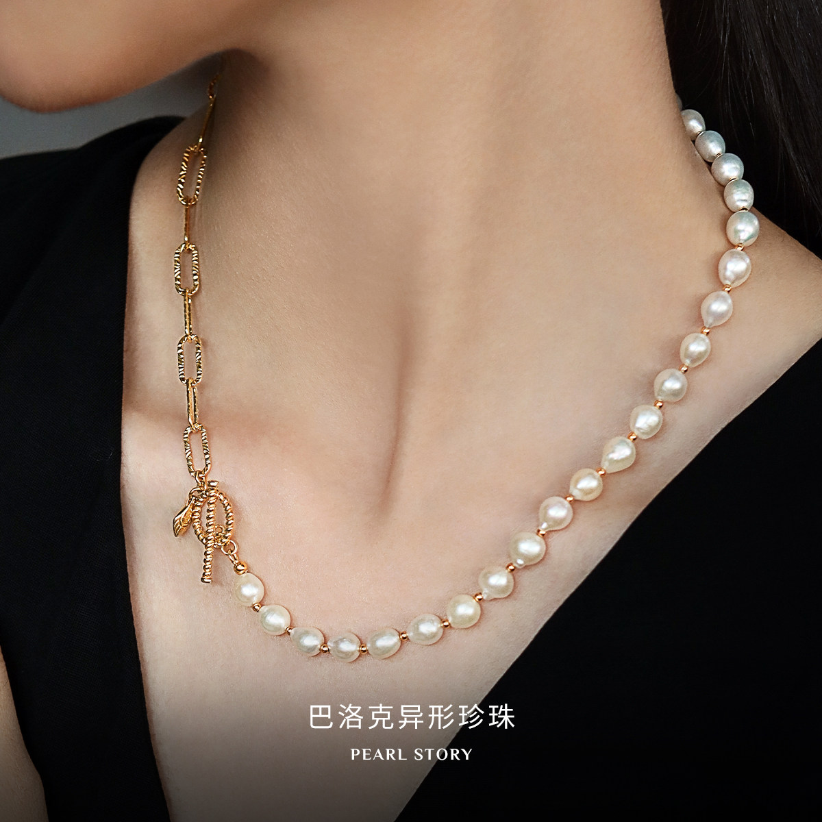 MGS/曼古银珍珠物语925银巴洛克珍珠项链链设计精致大气锁骨链子