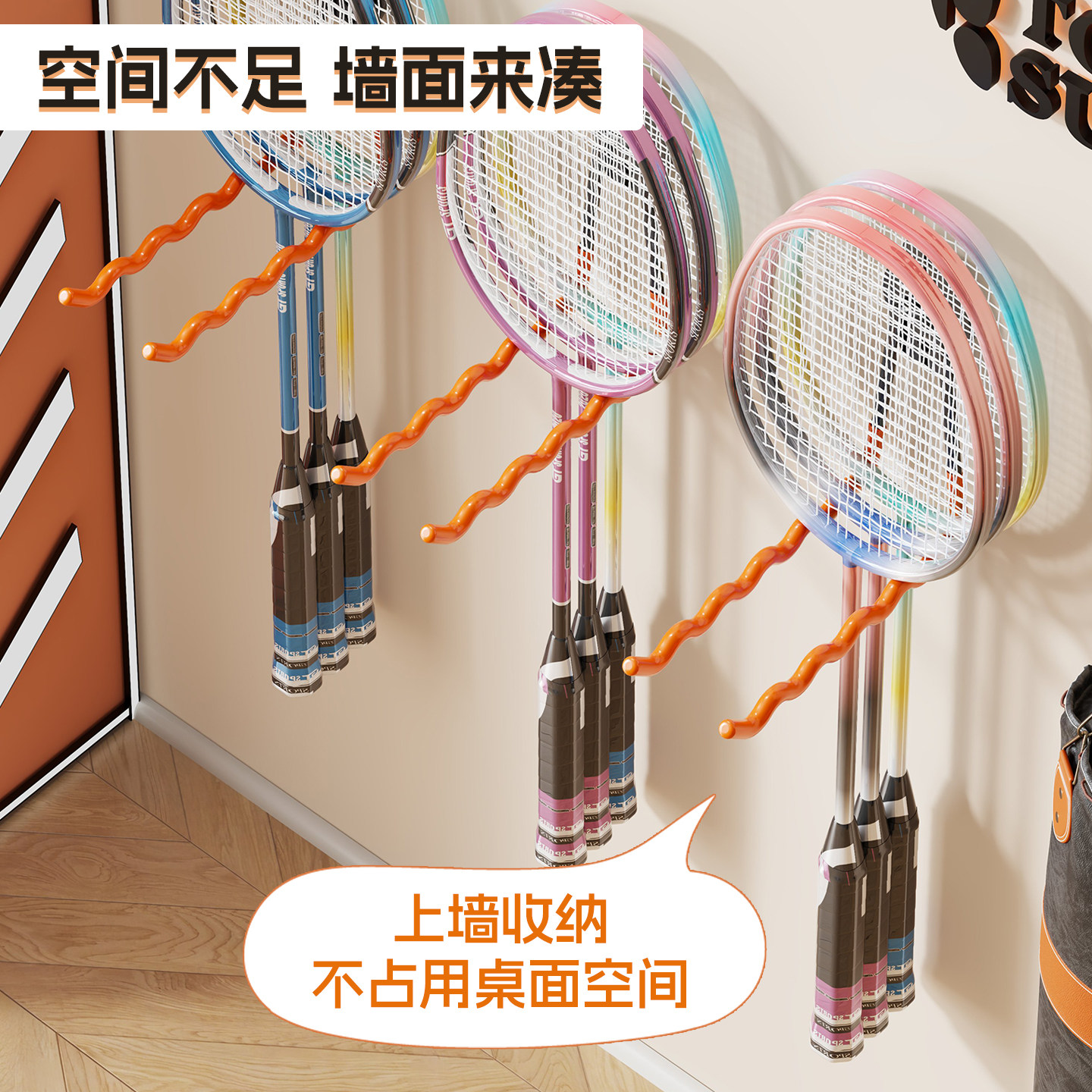 羽毛球拍展示架挂钩羽毛球免打孔陈列柜体育馆多功能羽毛球拍网架