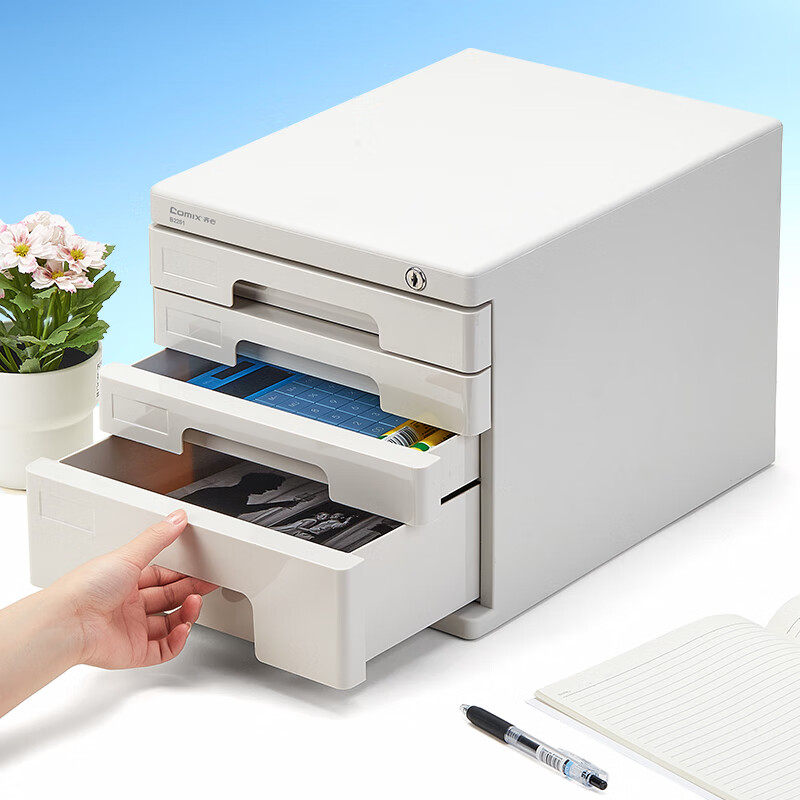 齐心(Comix)4层带锁桌面文件柜抽屉式拉手塑胶收纳柜带索引