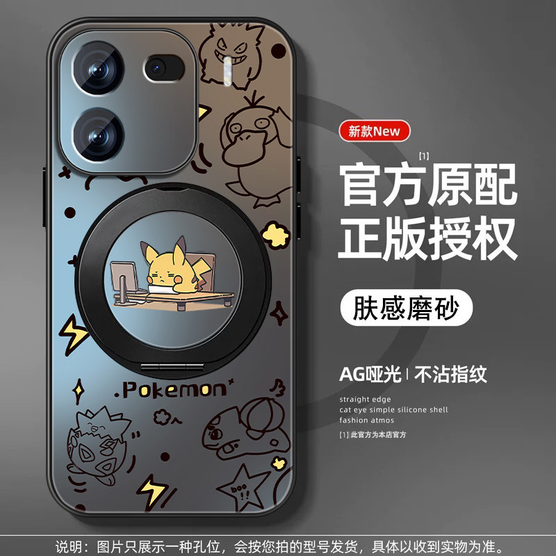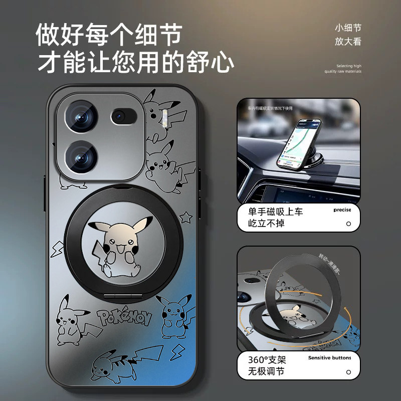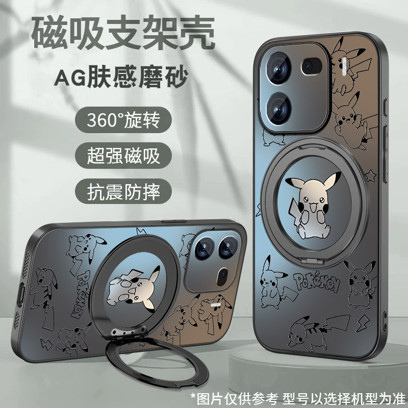 适用iqoo12手机壳iqoo13皮卡丘iqoo11pro磁吸旋转支架10高级感iqoo9/8/7/3防摔保护套男新款磨砂5pro全包外壳