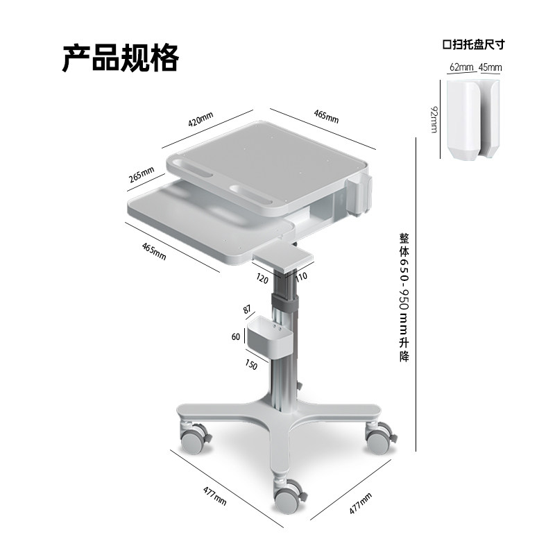 鲸晨牙科口腔口扫笔记本移动小推车医疗笔记本轻便款推车医疗推车