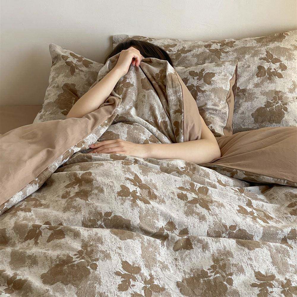 中古风色织空气感大提花全棉四件套简约柔软纯棉被套床单1.8m床品