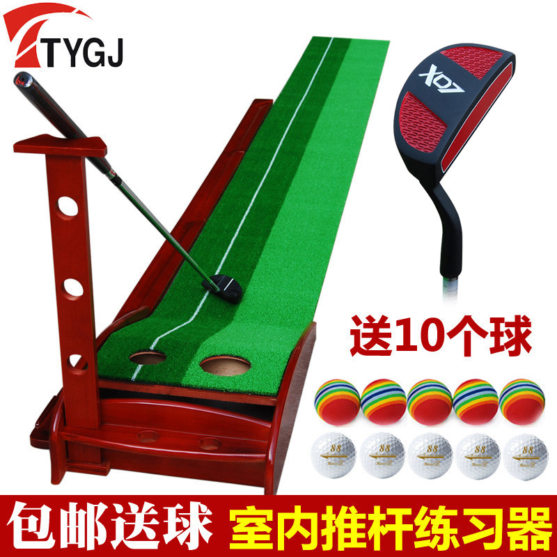 高尔夫球室内推杆练习器天鹅绒毯 辅助瞄线便携实木家庭球道套装