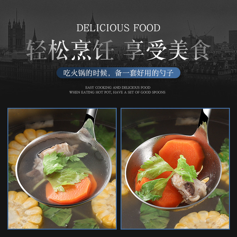 304不锈钢汤勺火锅勺家用汤勺漏勺套装长柄加厚盛汤勺子多规格起