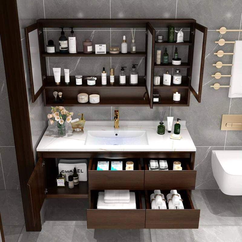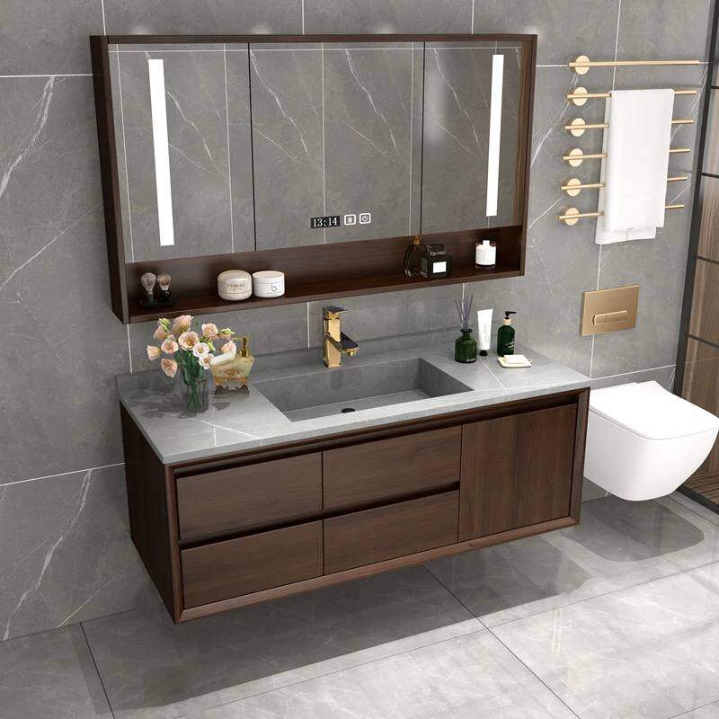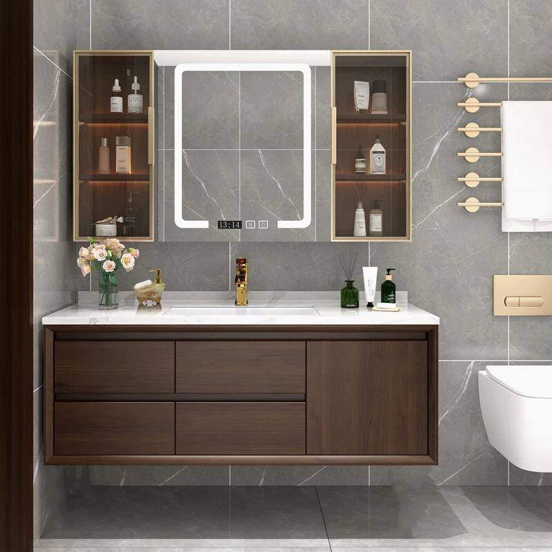 新中式橡木烤漆浴室柜组合一体陶瓷盆实木智能挂墙式洗脸盆卫浴柜