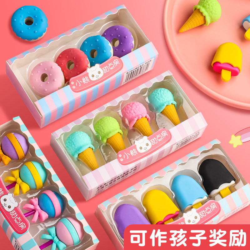 可爱卡通雪糕冰淇淋橡皮擦幼儿园儿童创意橡皮好看的漂亮高颜值创意造型玩具橡皮批发小学生奖励小礼品礼物盒