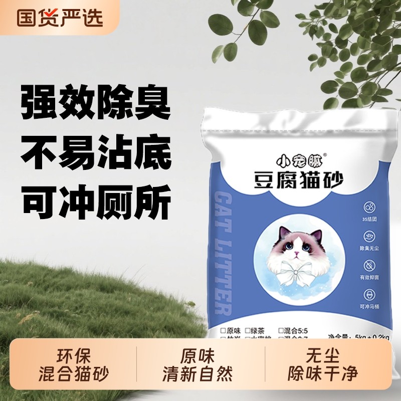 小宠腻豆腐猫砂除臭无尘绿茶猫咪用品猫沙膨润土玉米砂约20公斤