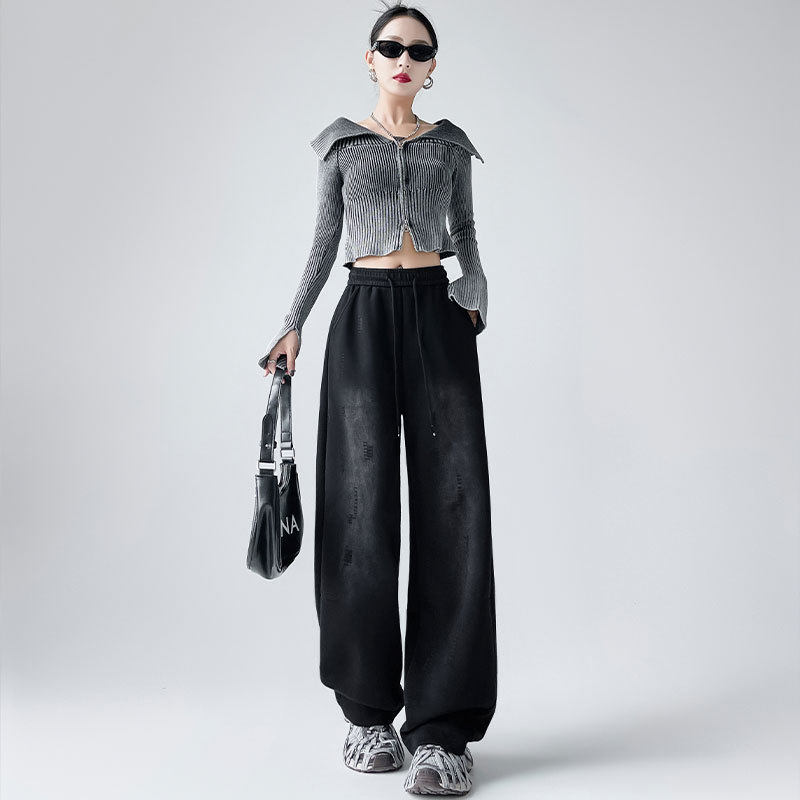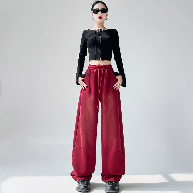 唐狮DESSO秋冬新款糯米裤高腰垂感宽松加绒直筒阔腿裤