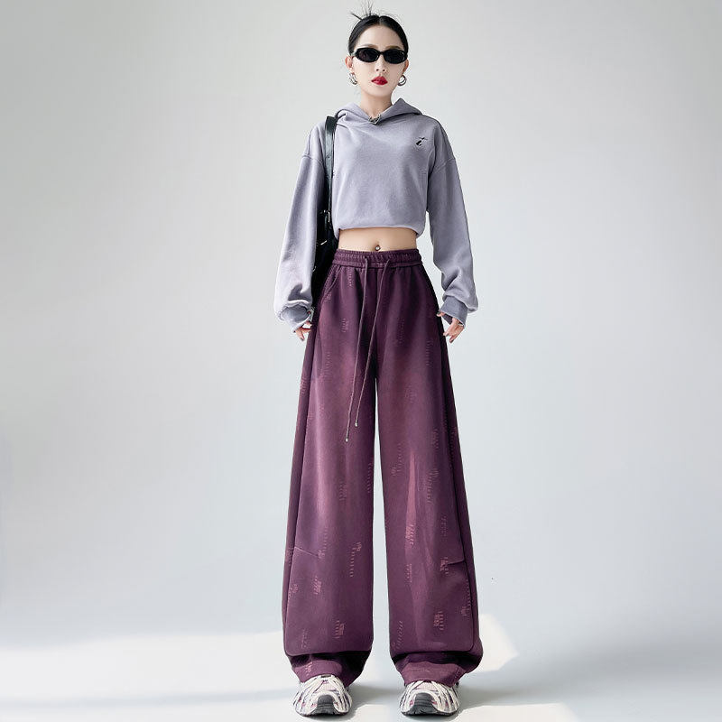 唐狮DESSO秋冬新款糯米裤高腰垂感宽松加绒直筒阔腿裤5