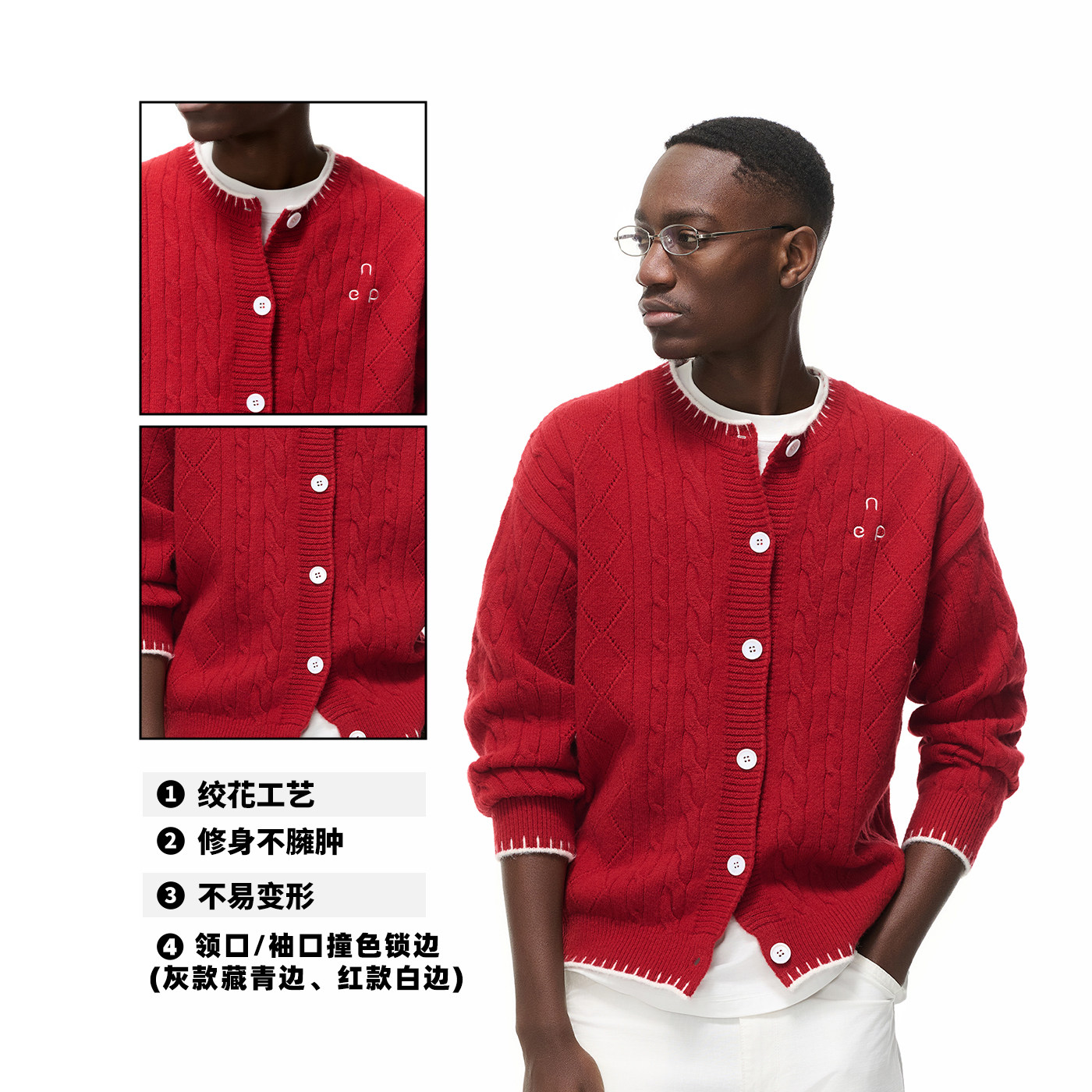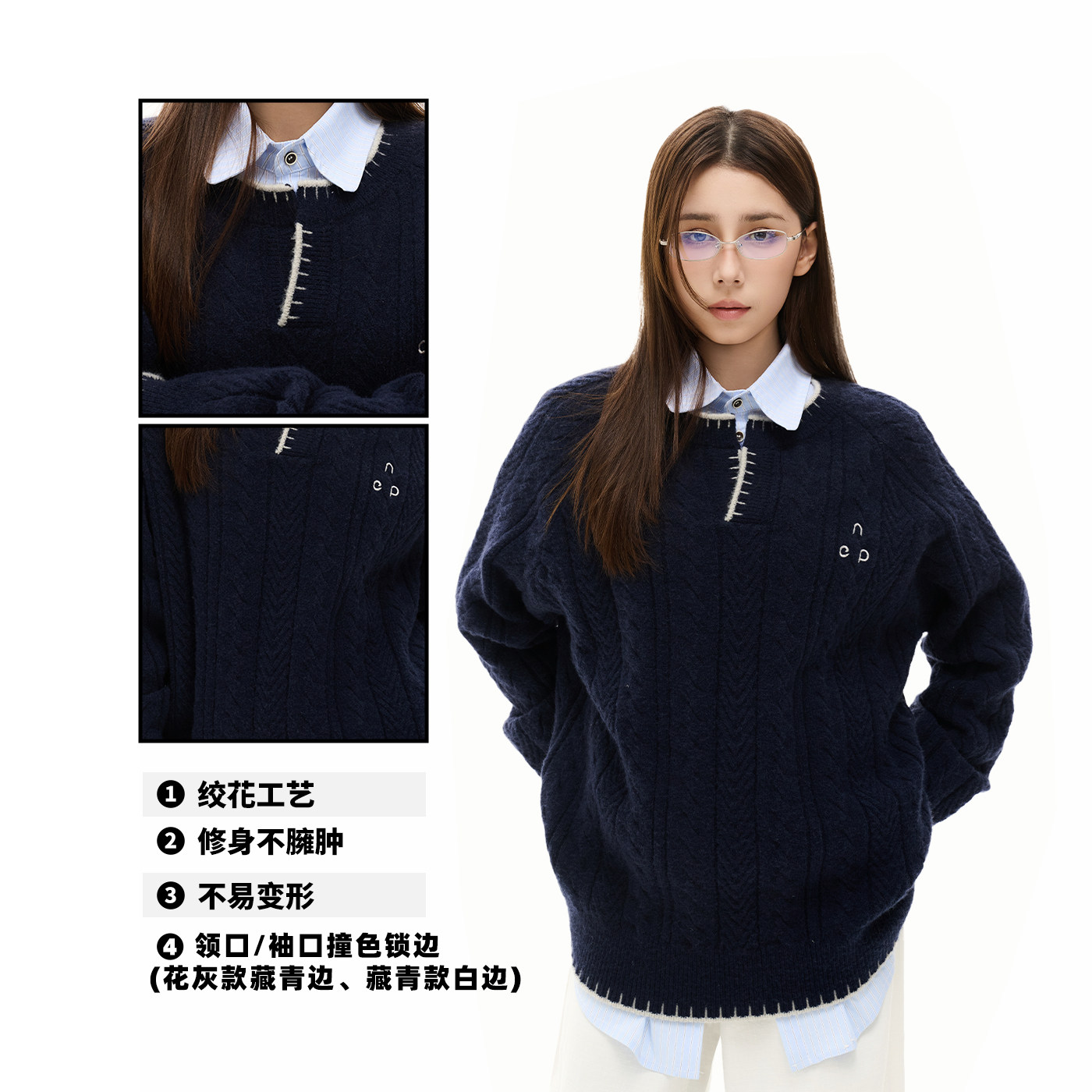 【所有女生直播间】NEVER EMPTY绞花针织开衫毛衣男女撞色上衣