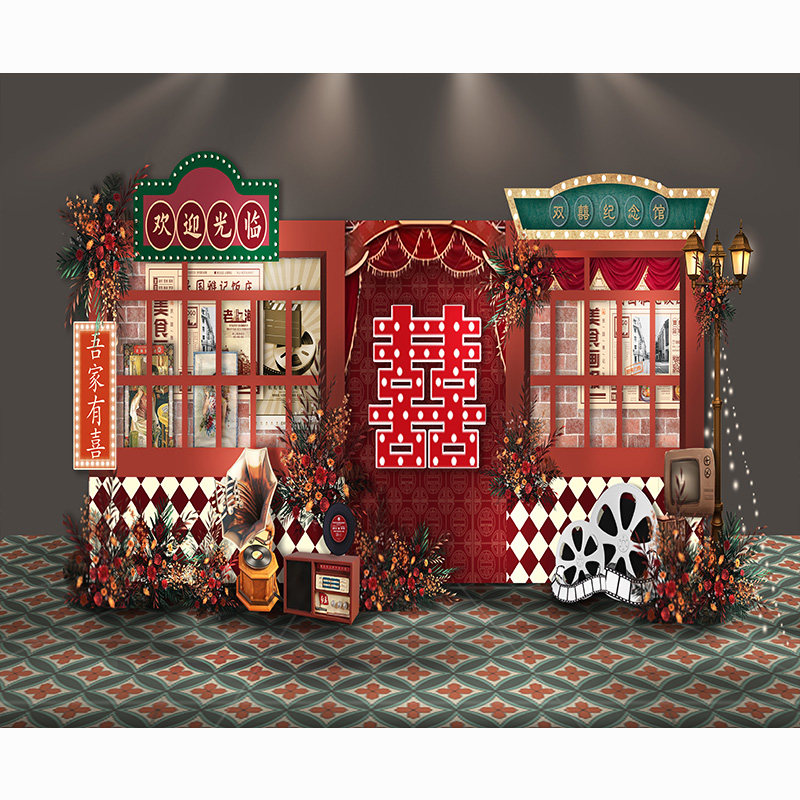 怀旧老上海708090年代怀旧背景布婚礼港风直播间背景墙复古风香港街道大上海旧上海男女主播抖音快手拍视频段