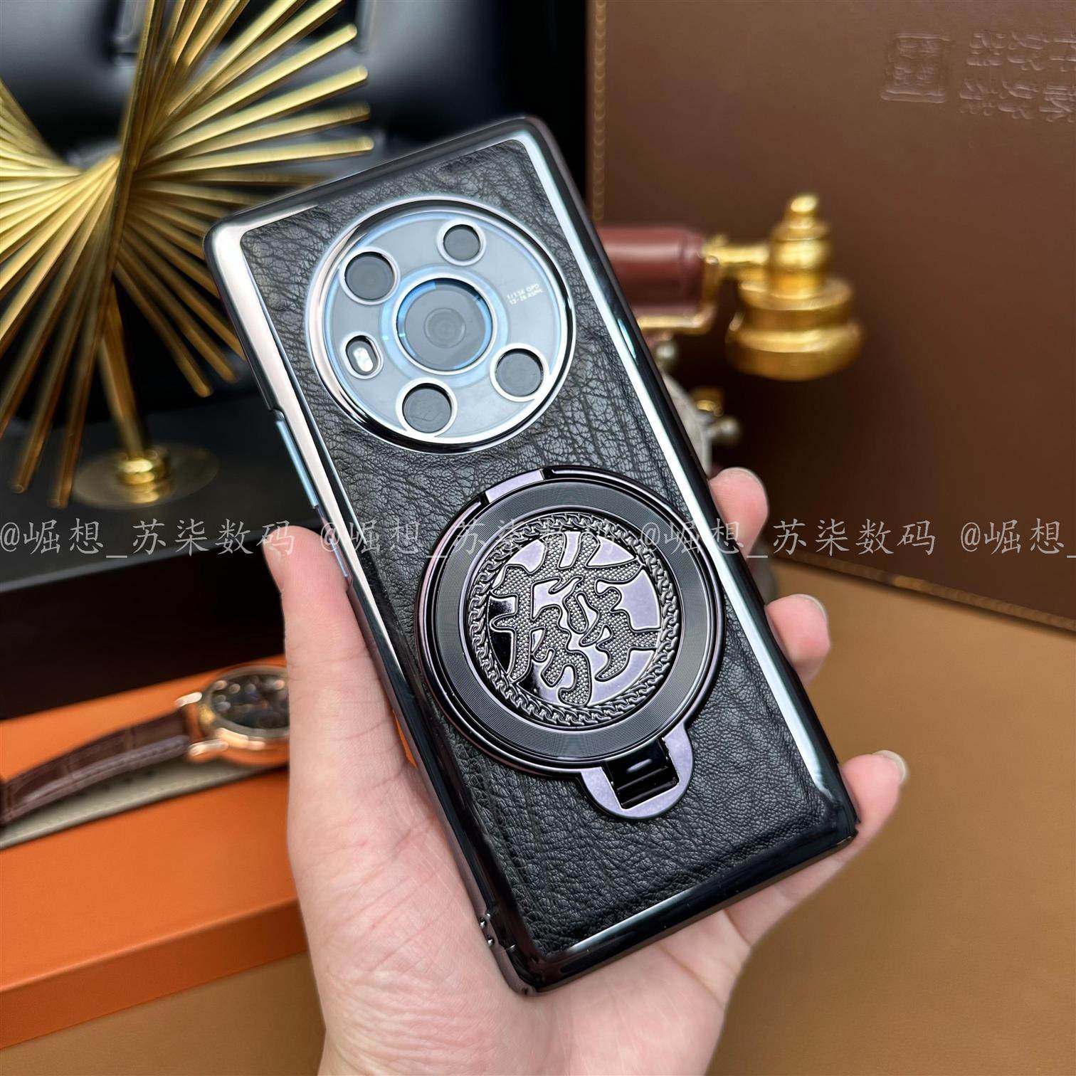 【發财陀螺支架+高档鳄鱼纹】适用荣耀Magic3手机壳magic8pro新款全包镜头防摔保护壳magic4男士高级感商务壳