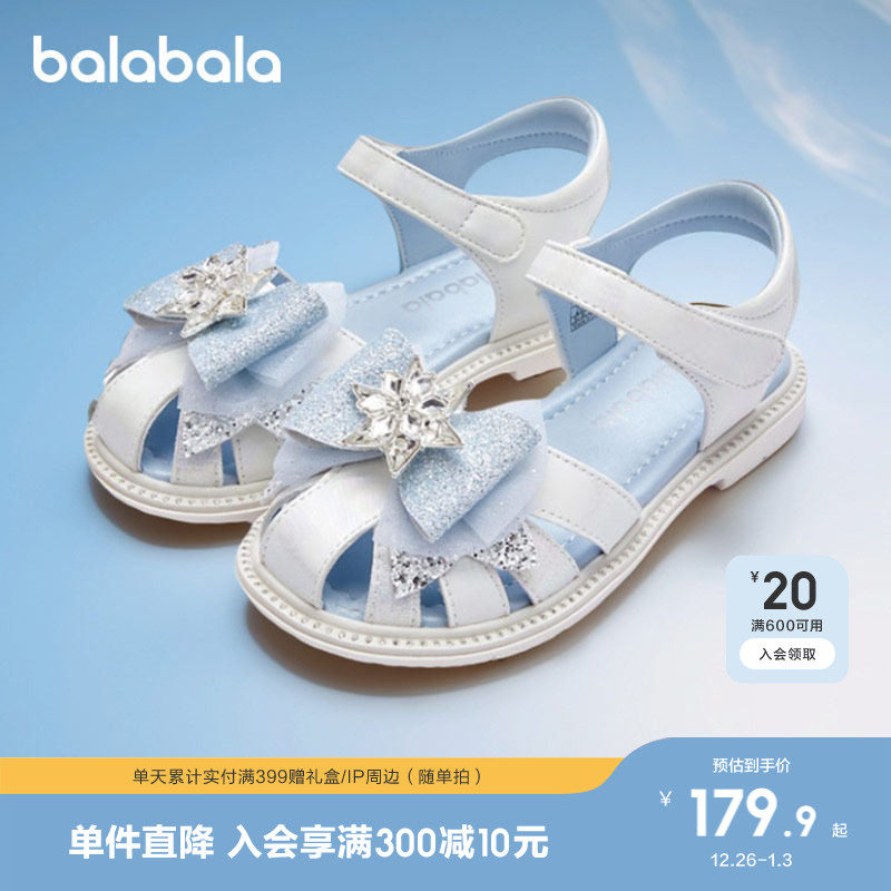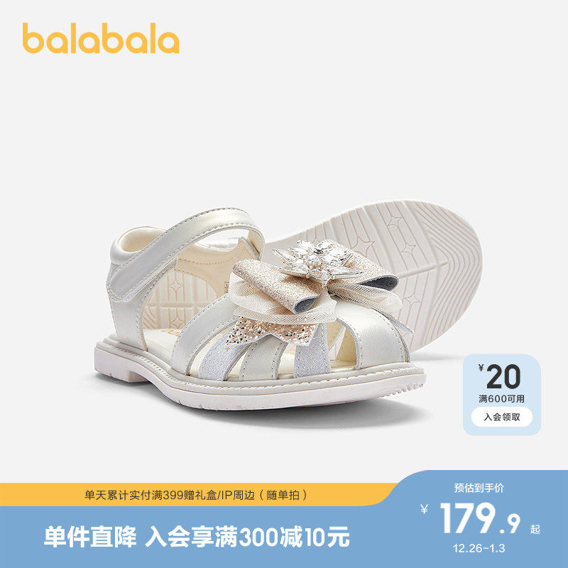 巴拉巴拉童鞋儿童凉鞋女童公主鞋2025夏季新款舒适蝴蝶结防滑鞋子