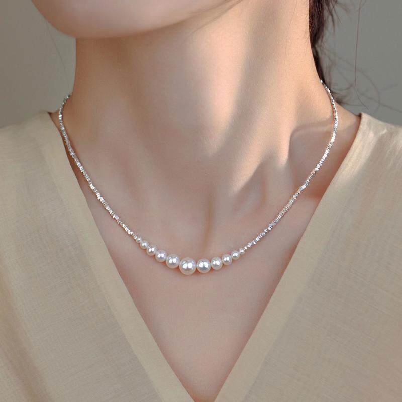 渐变碎银子施家珍珠项链女款s925纯银2024新款轻奢小众锁骨链颈链