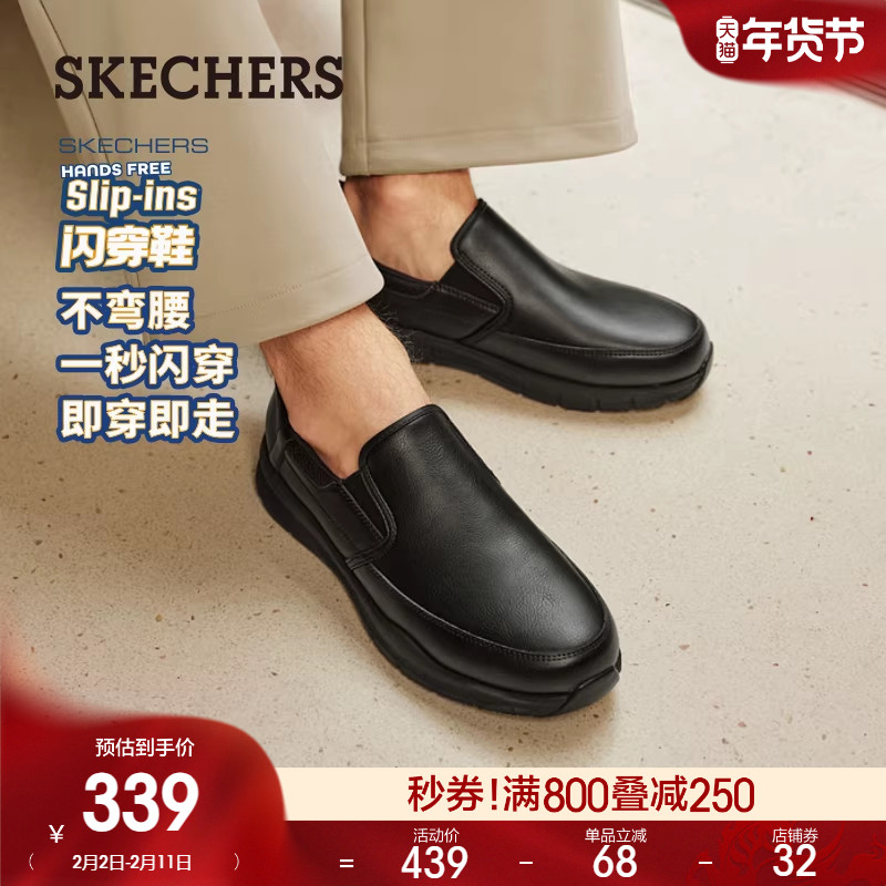 斯凯奇闪穿鞋春季软底皮鞋工作鞋一脚蹬休闲男鞋黑色商务皮鞋