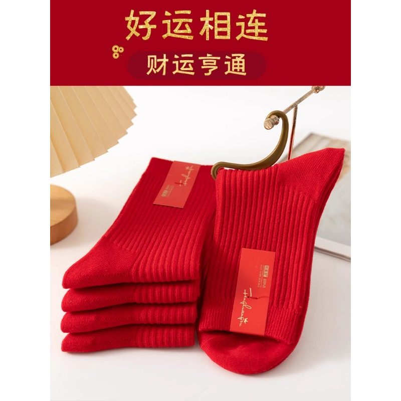 2026红袜子本命年男女秋冬款优质棉袜中筒袜结婚情侣长袜防臭新款