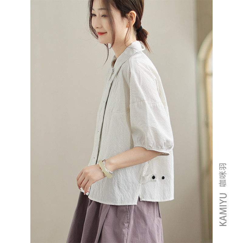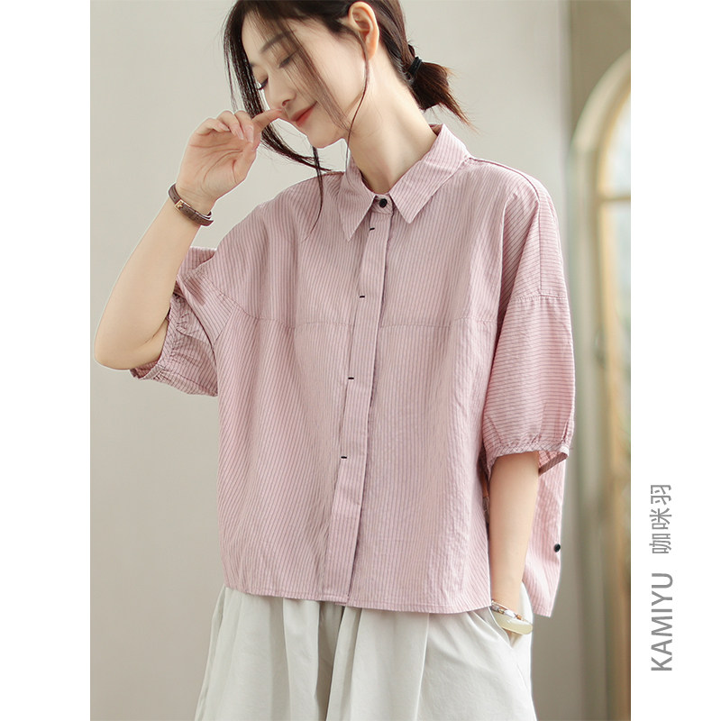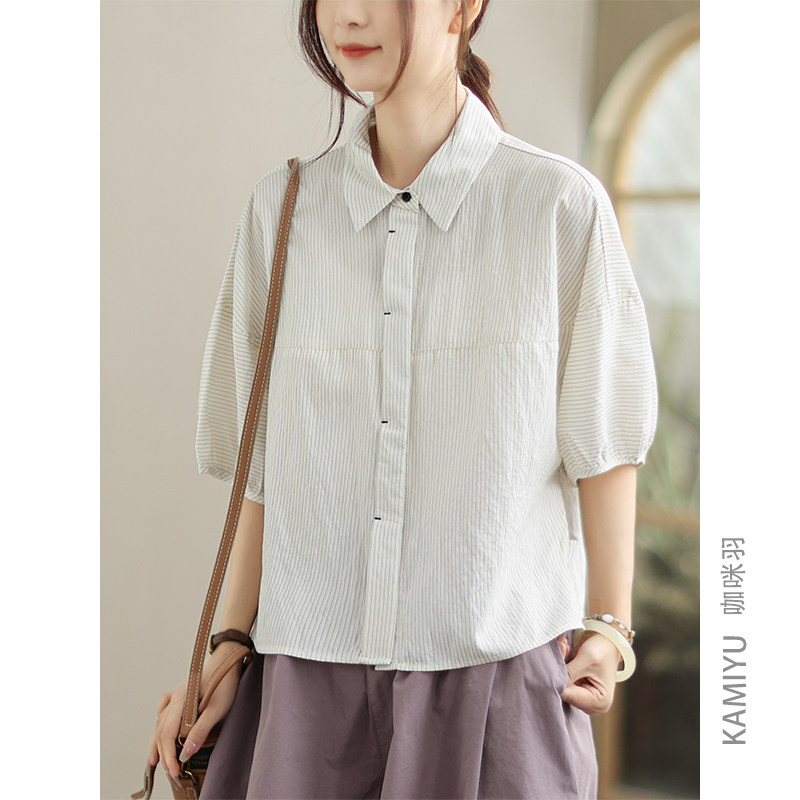 咖咪羽衬衫短袖女夏季新款时尚休闲条纹简约百搭宽松女装上衣T恤
