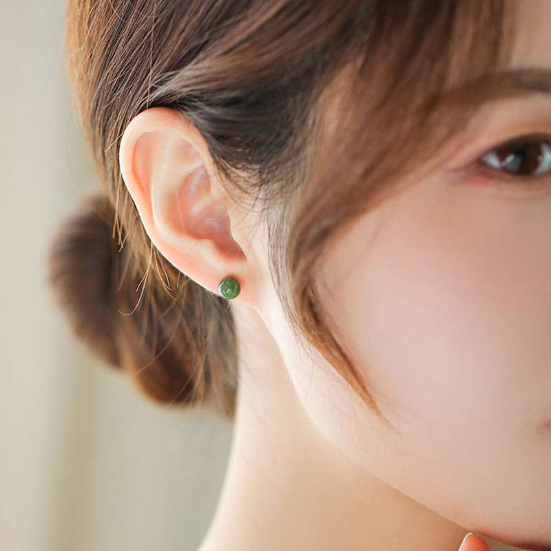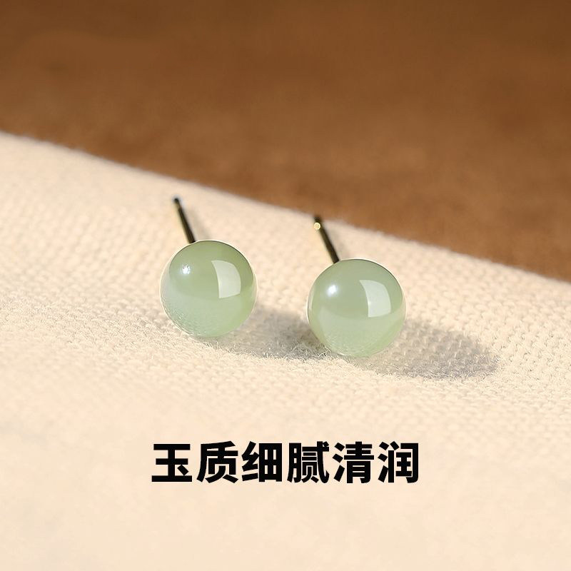925银针菠菜绿碧玉简约豆豆耳饰天然和田玉耳钉女款气质小众耳环