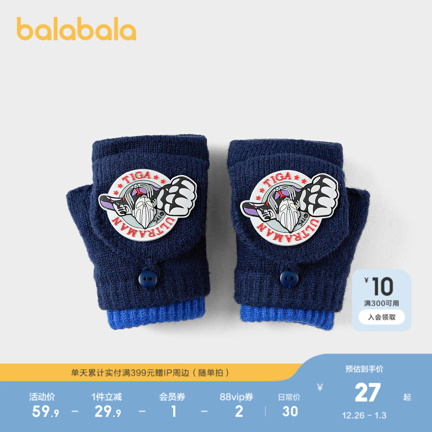 【奥特曼IP】巴拉巴拉儿童手套男童翻盖手套舒适保暖颜色随机发货