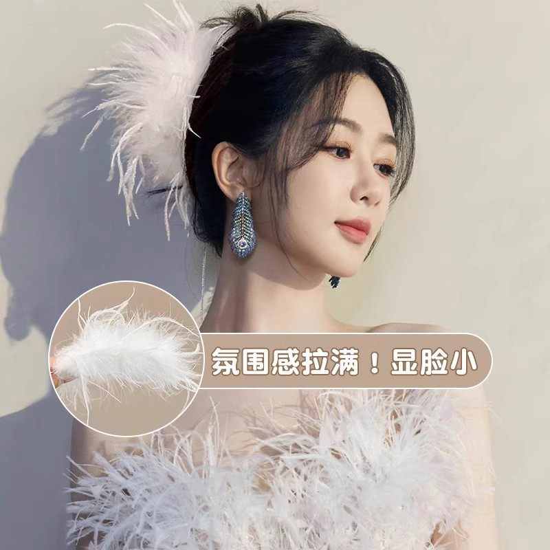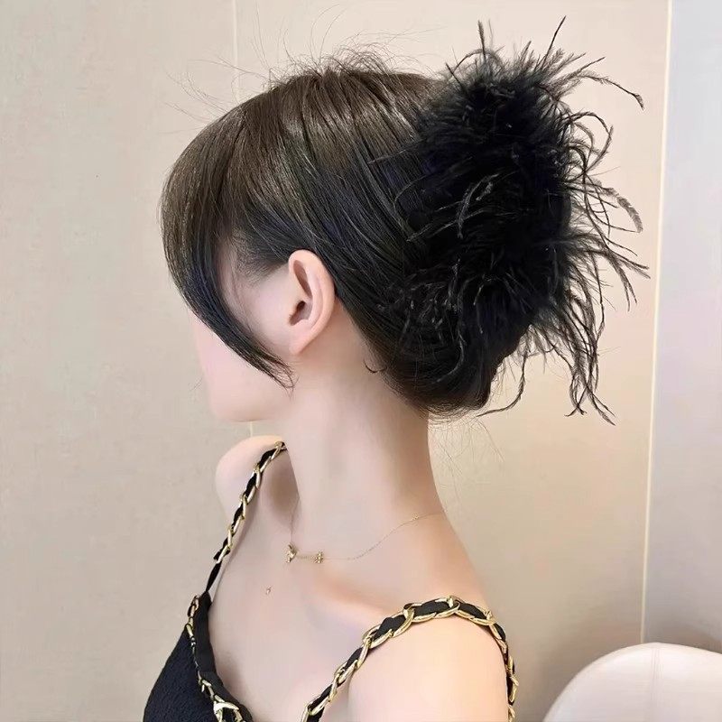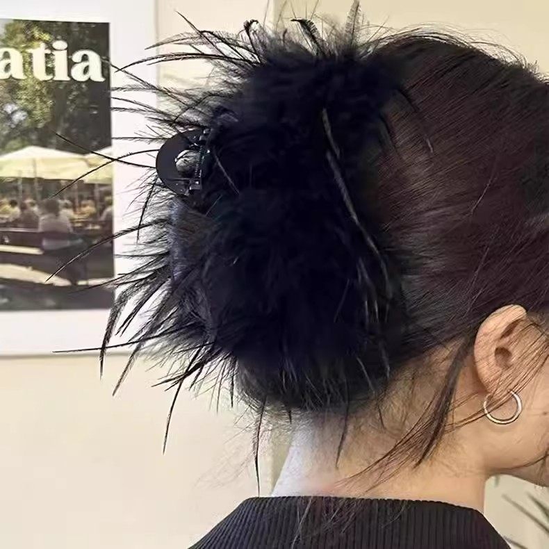 2025新款黑色羽毛抓夹女气质鸵鸟毛大号后脑勺头饰发饰鲨鱼夹发卡