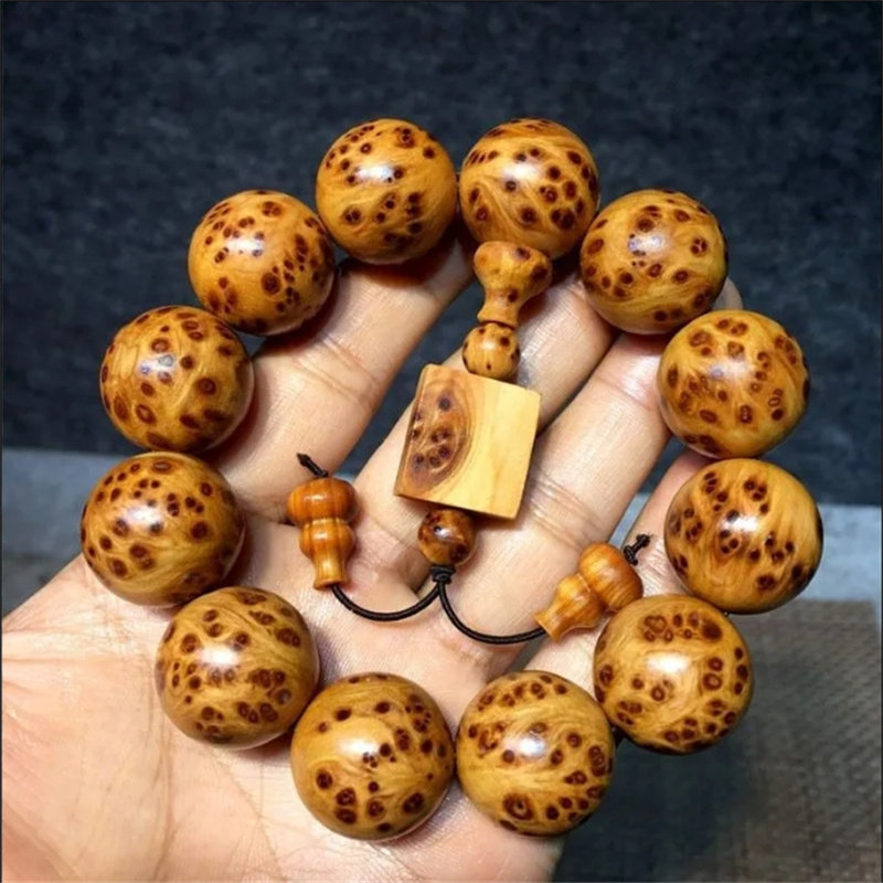 崖柏手串男满瘤疤2.0高油高密陈化老料太行岩柏文玩佛珠手链包浆