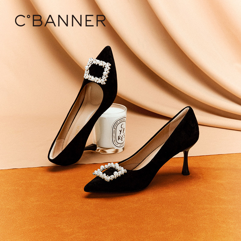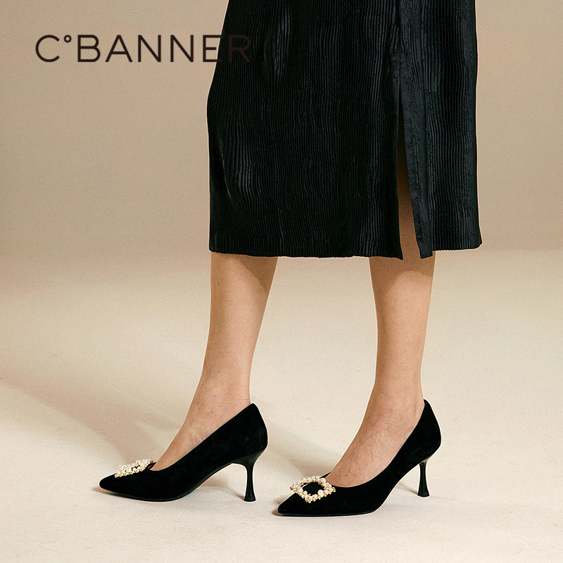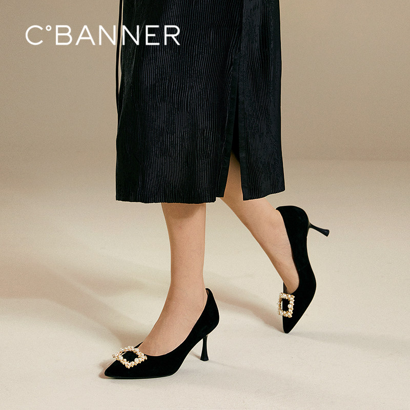 【静音系列】千百度细高跟鞋女2025秋季新款羊皮扣饰法式浅口单鞋
