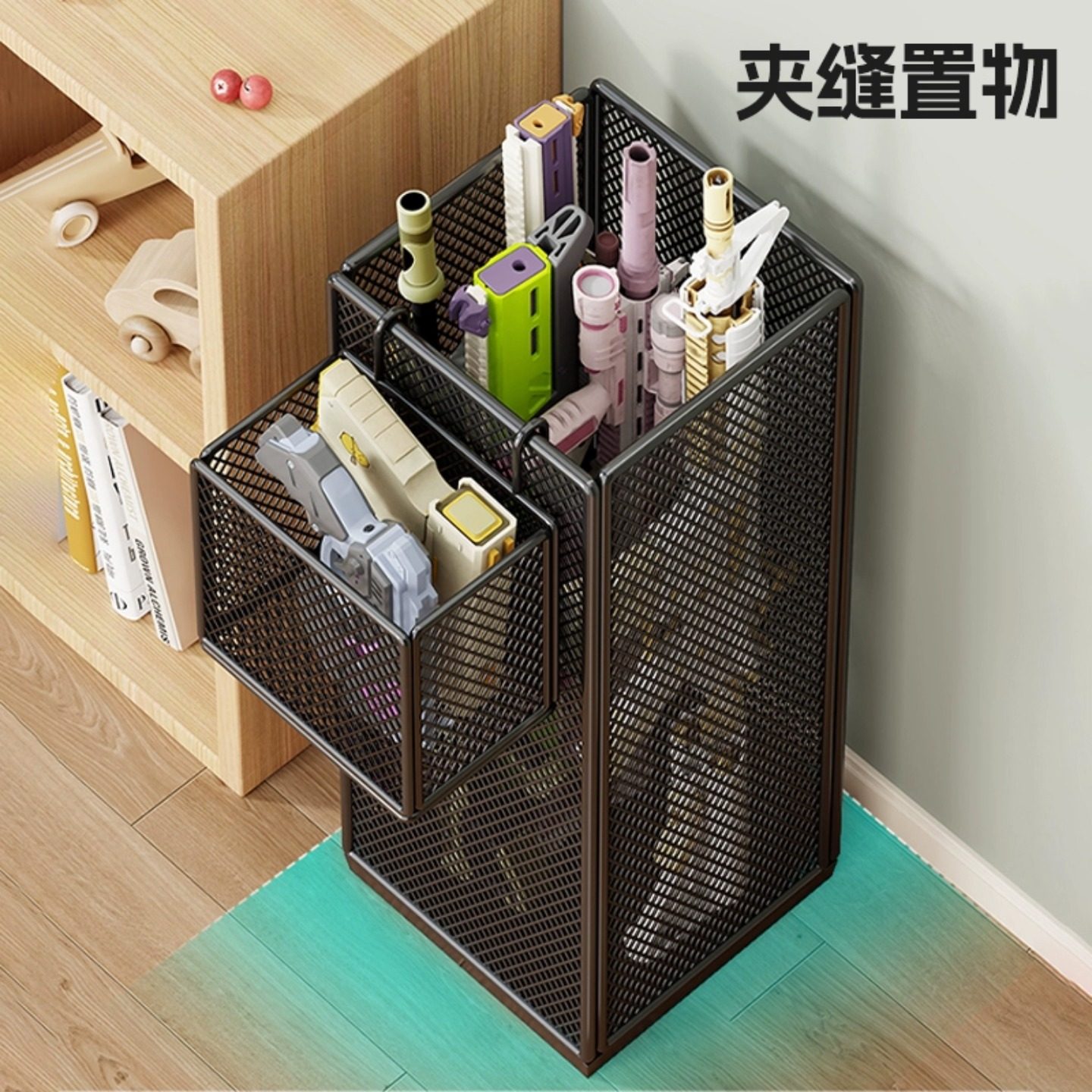 儿童玩具枪收纳筐夹缝整理架家用客厅收纳神器雨伞健身器材收纳箱