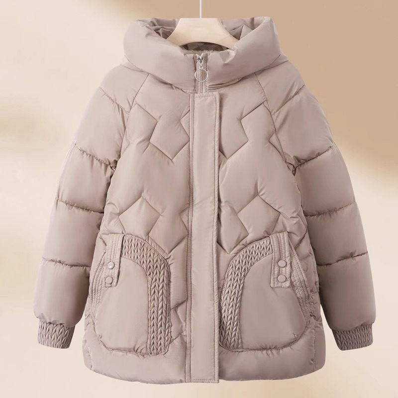 妈妈冬装洋气连帽羽绒服短款中年女时尚大码外套中老年保暖厚棉袄