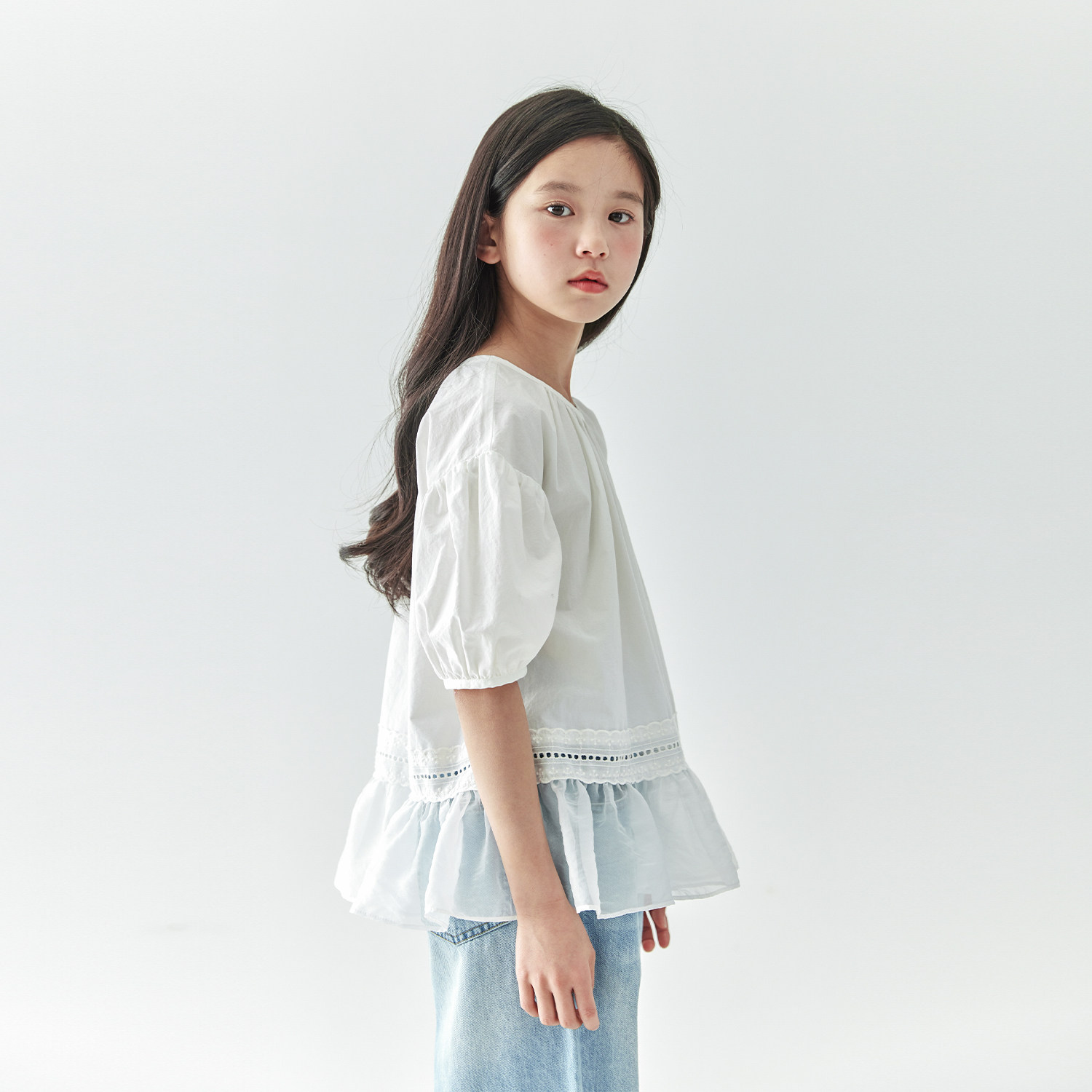 棵初25年夏新款女童轻盈浪漫氛围感纯色小衫花纱拼接下摆衬衫