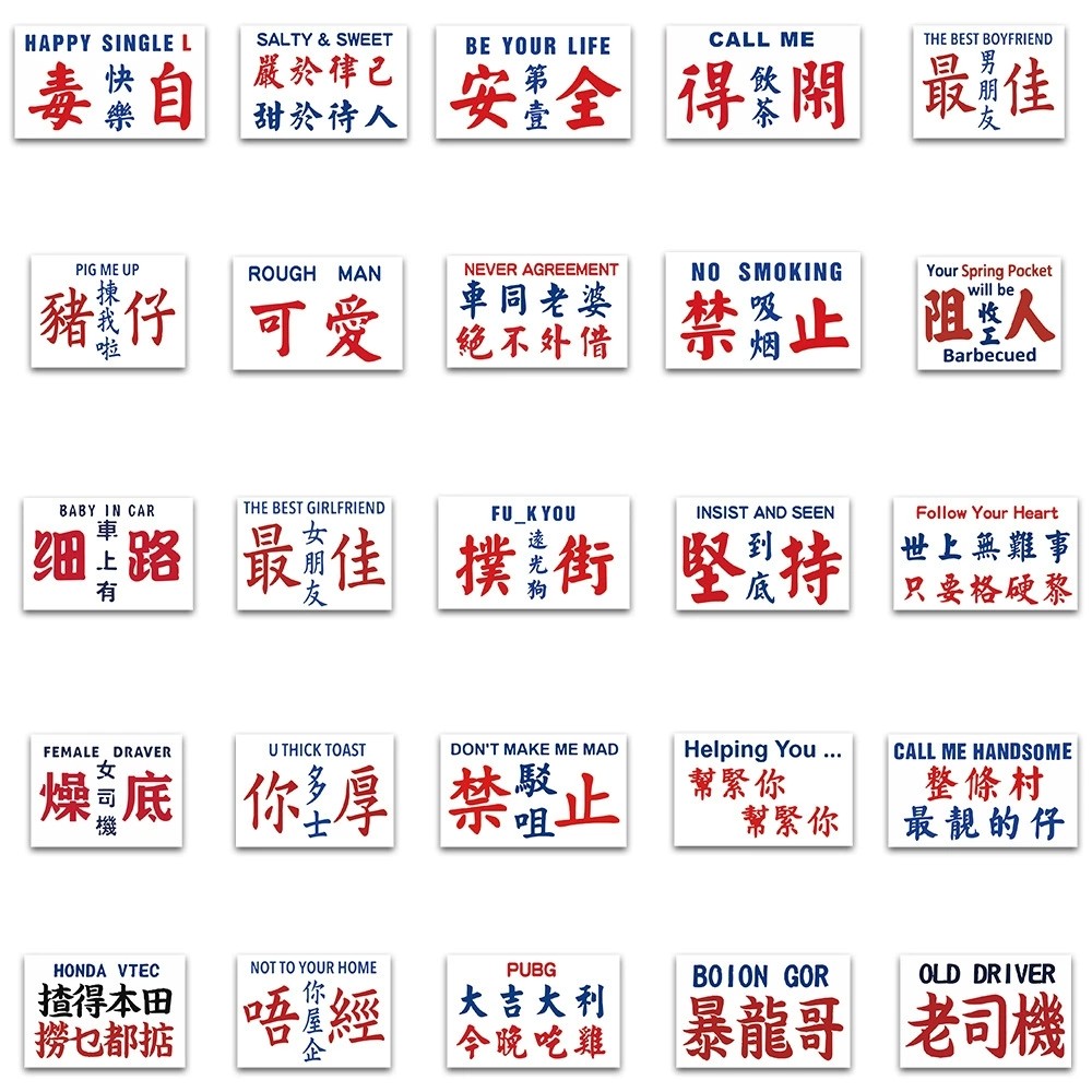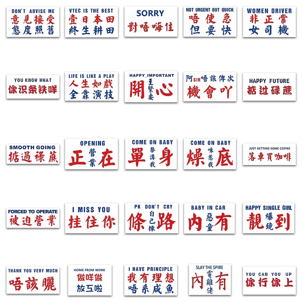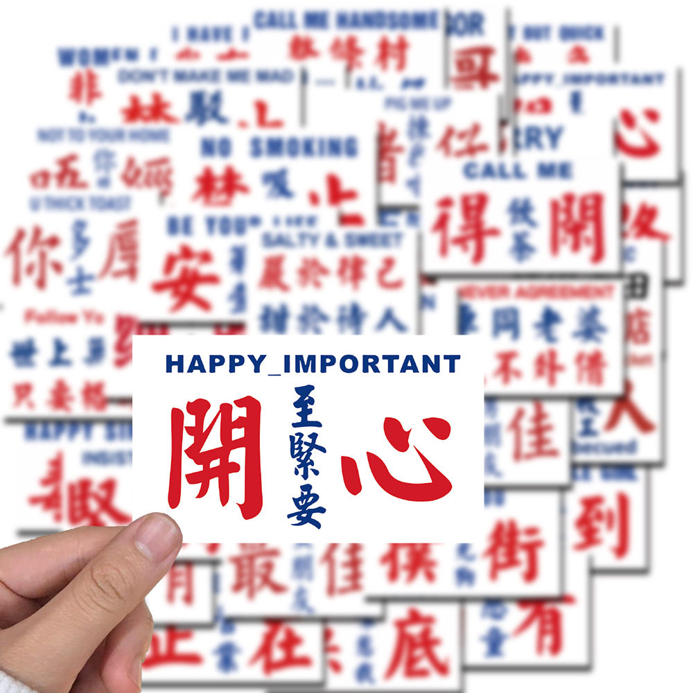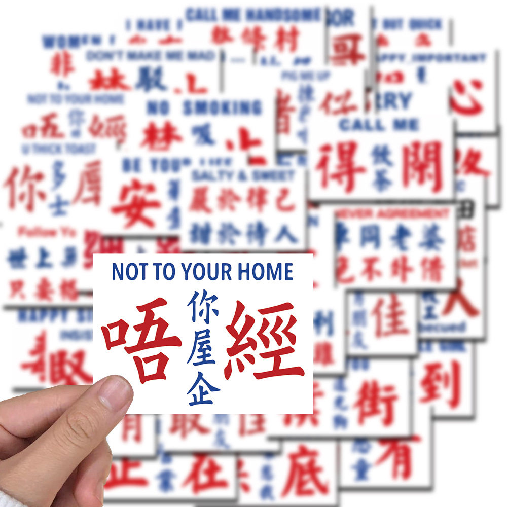 50张中文粤语英文字贴纸电脑手机壳行李箱可爱图案装饰防水不重复