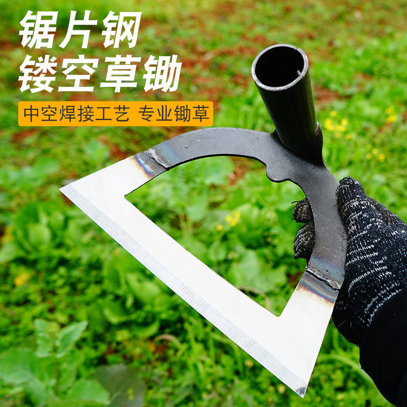 除草锄头空心锄加厚锯片钢锄除草神器农用长柄全钢钢锄头开孔锰钢