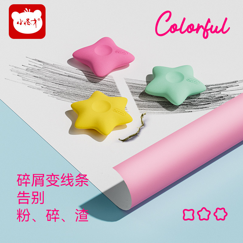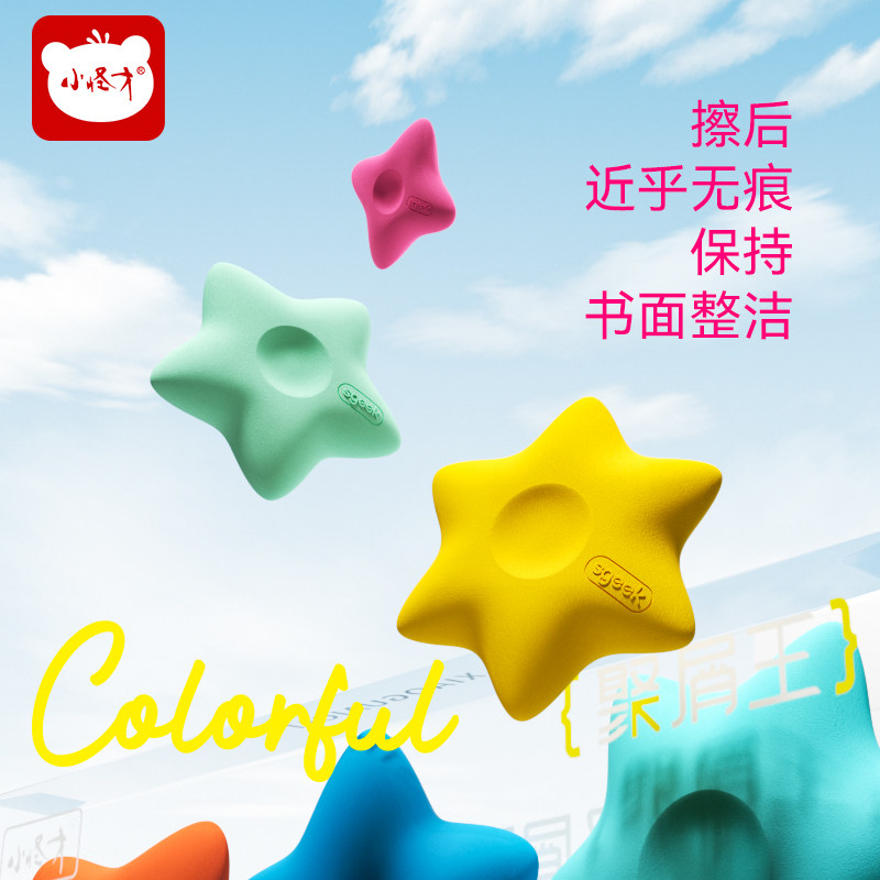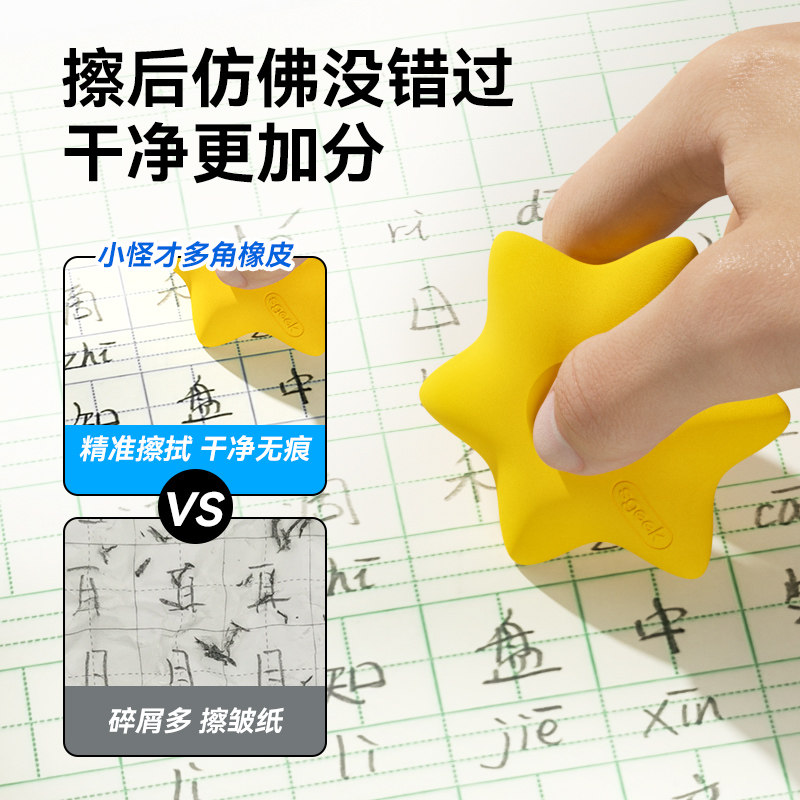小怪才多角橡皮擦小学生考试用整洁无屑超干净尖角细节多色指尖陀螺擦拭成条少碎屑改错擦字修改美术绘画橡皮