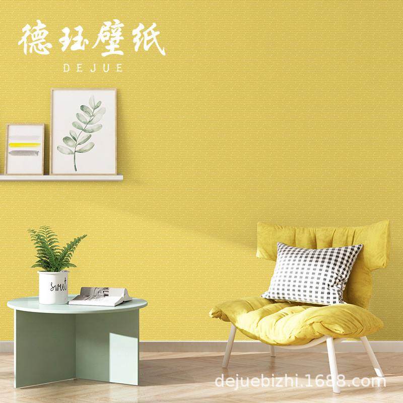 北欧风格纹无纺布纯色素色墙纸暗现代简约黄色客厅卧室房间壁纸
