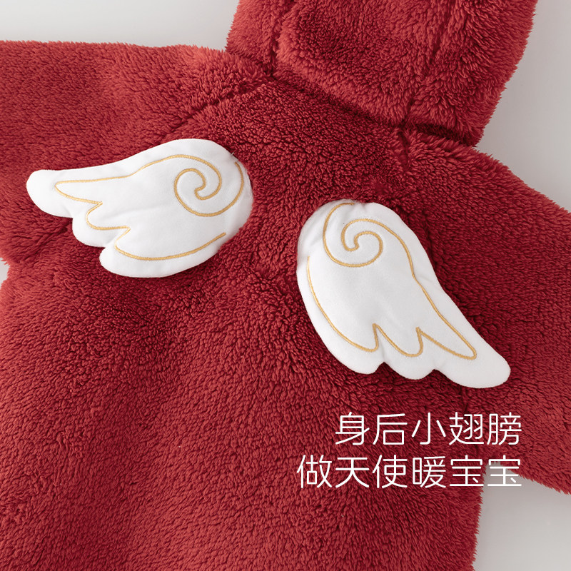 【舒绒棉】婴儿毛绒保暖连体衣夹棉冬季宝宝红色新年拜年哈衣冬装