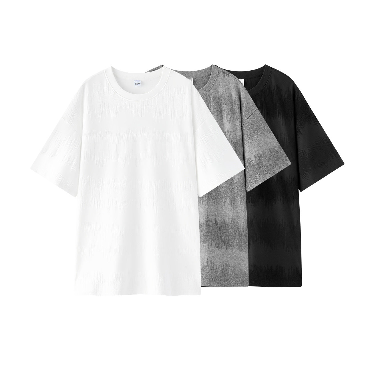 宽松短袖T恤男 质感提花条纹