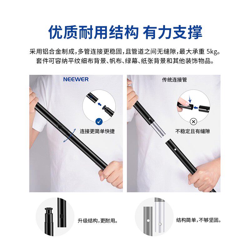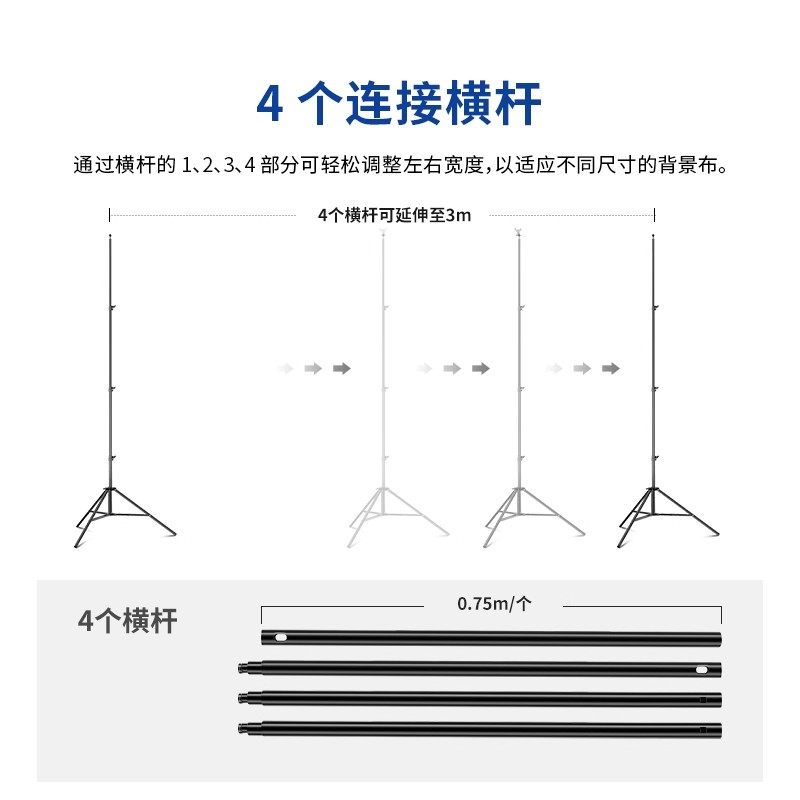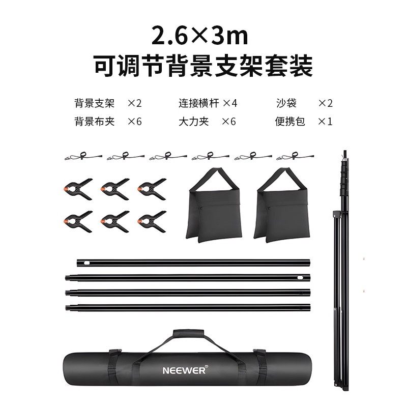 NEEWER/纽尔 2.6*3m背景布支架铝合金伸缩三脚架横杆横臂壁挂绿色投影布绿幕电影绿幕人像直播大力夹沙袋