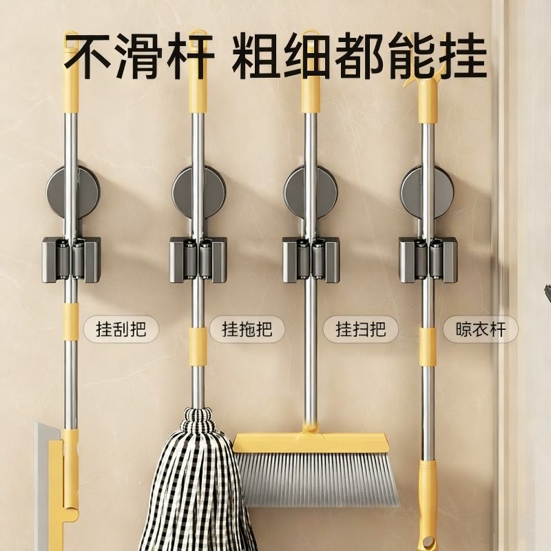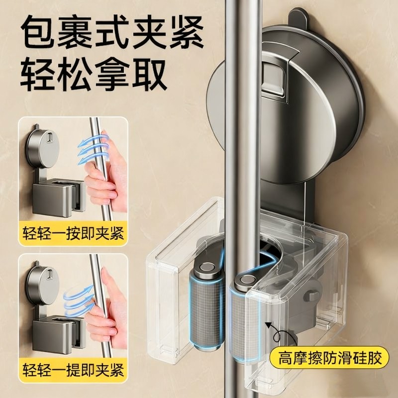 吸盘拖把壁挂夹挂钩扫把拖把夹收纳神器卫生间门后拖把架免打孔