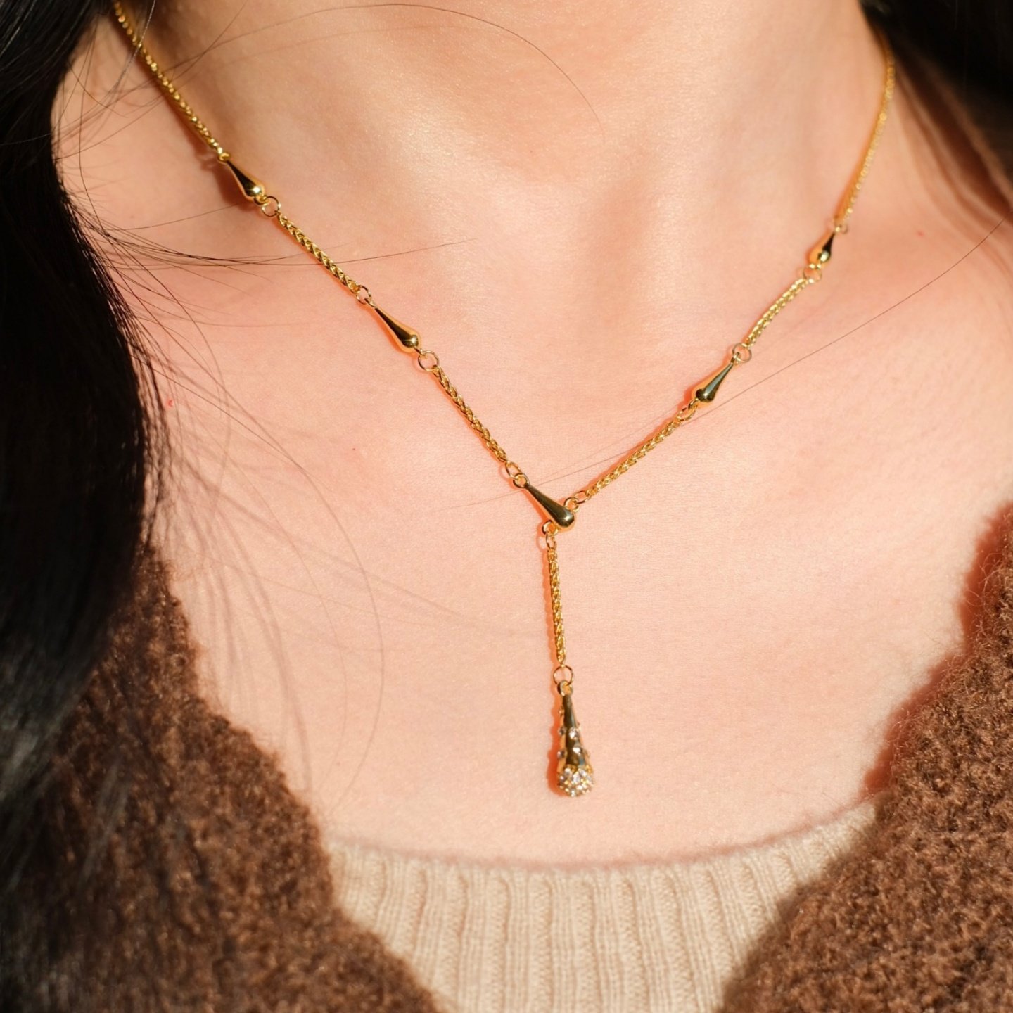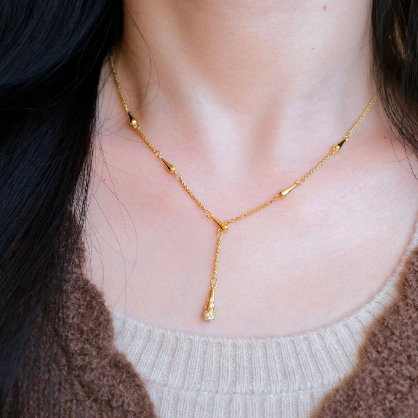 《瑞秋》复古优雅法式金色水滴沙漏吊坠精致高级感项链锁骨毛衣链