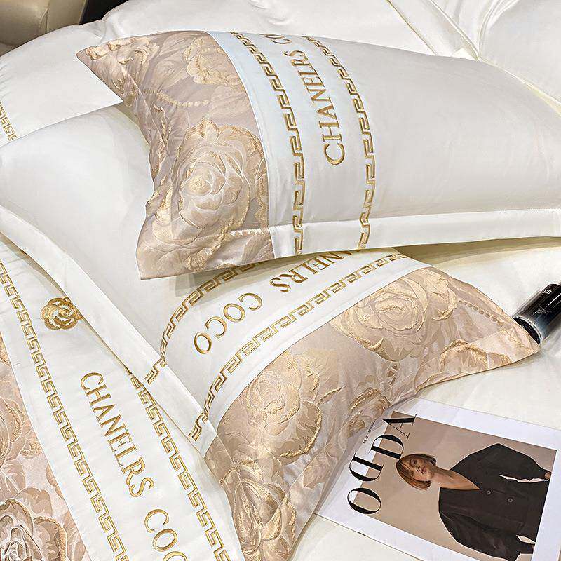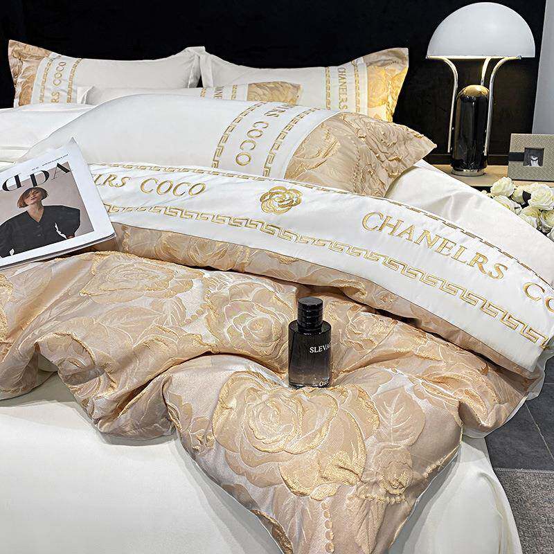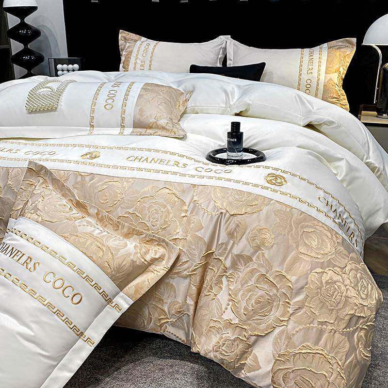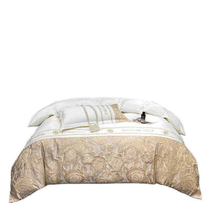夏季冰丝刺绣裸睡四件套轻奢高级凉感水洗真丝滑被套床单三件套笠