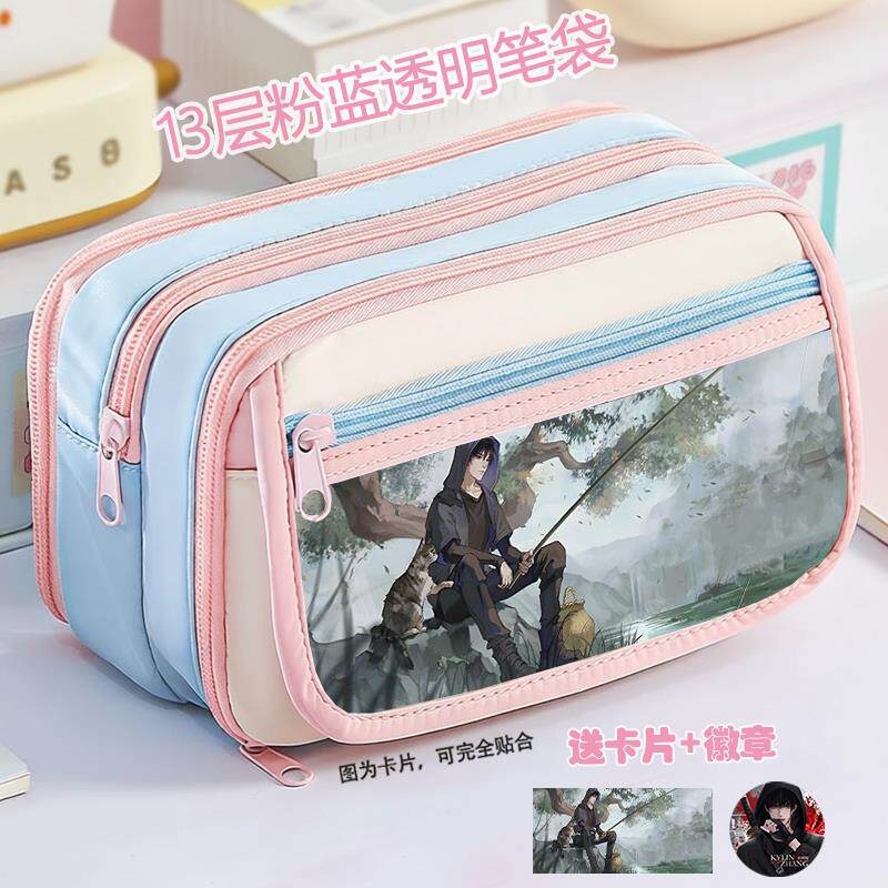 盗墓笔记笔袋粉蓝高颜值痛包可放吧唧卡片大容量学生铅笔盒小清新