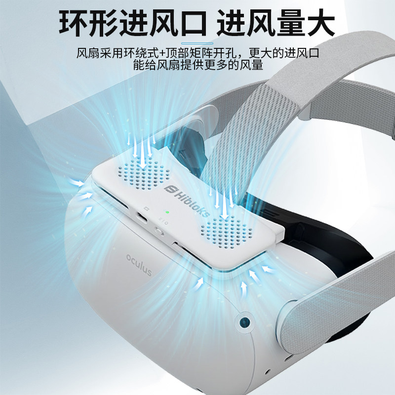 Hibloks适用Oculus quest2配件空气循环散热遮光面罩加宽脸vr全通风降热风扇面罩