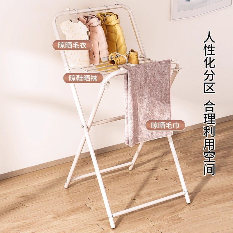 【国补】佳帮手奶油折叠晾衣架室内阳台家用凉衣服落地晒被子神器
