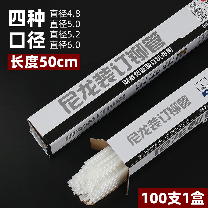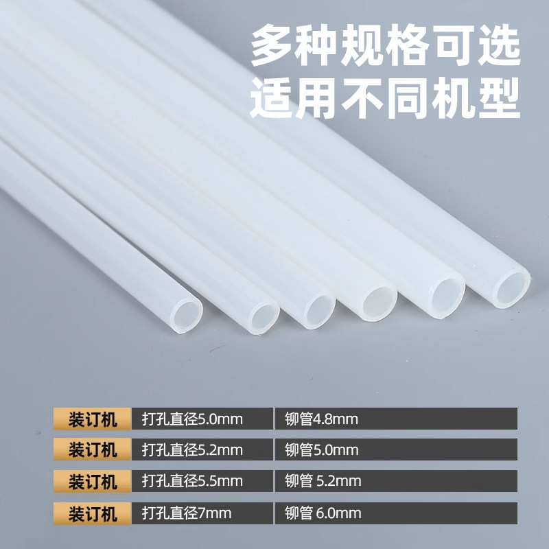 铆管凭证装订机4.8/5.0/5.2/6.0mm财务会计热铆钉尼龙管适用得力14601 3885 3847 3888 3853热熔胶管塑料管