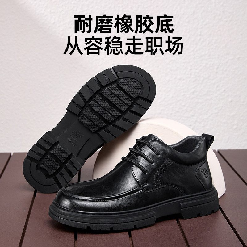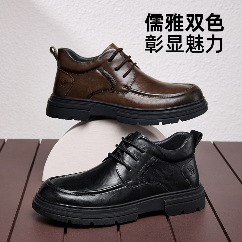 头层牛皮男鞋2025新款运动鞋英伦加绒皮鞋男士真皮休闲鞋厚底鞋子