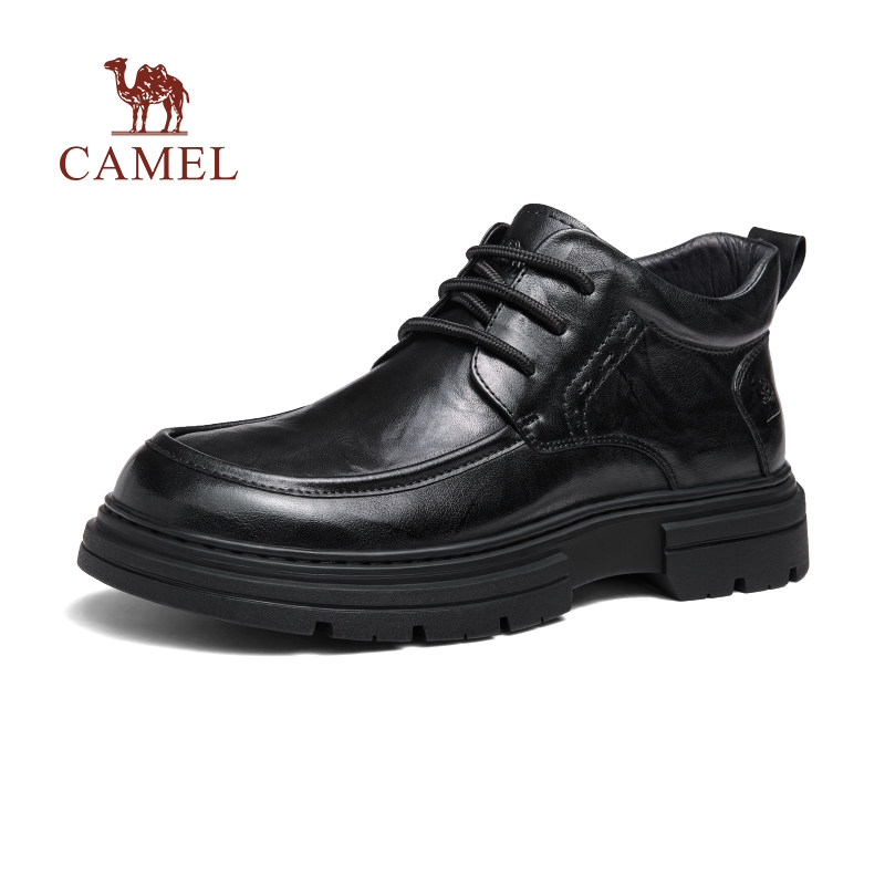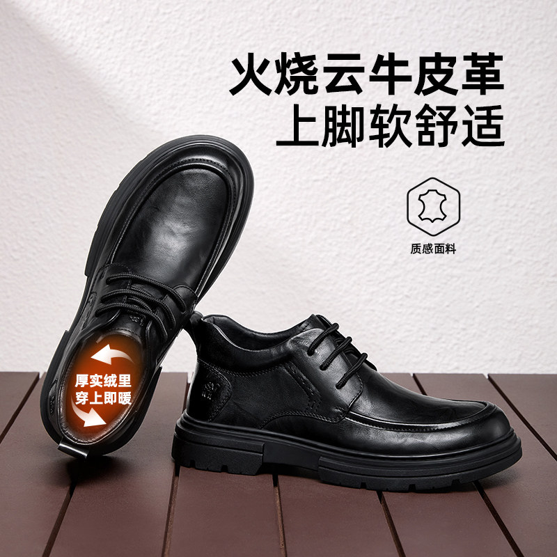 骆驼男鞋2025冬季新款保暖棉鞋通勤商务休闲皮鞋男士真皮厚底皮靴